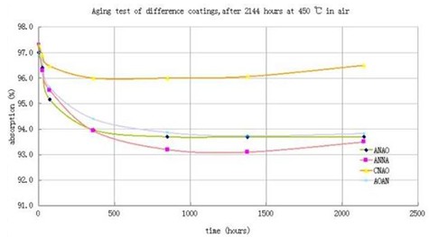 一是选择性吸收涂层在具备高吸收率、低发散比的同时还要具有较高的耐高温性能,以适应聚光后在高密度太阳能光辐照条件下的高温光热源;二是选择性吸收涂层在高温状态下具有较好的稳定性,吸收率不衰减,具有较长的使用寿命;三是具有较高的承压能力;四是具有较好的保温性能。